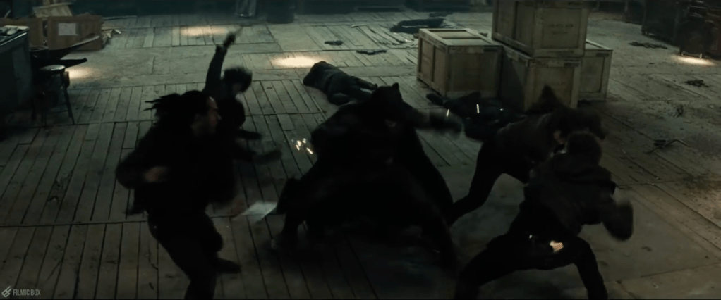 What the heck happened?? I mean, credit to Christopher Nolan, the “point” is supposed to be that Batman’s so fast and skilled and League of Shadowsy that we can’t even see what he’s doing. But the problem is just that: WE CAN’T EVEN SEE WHAT HE’S DOING! This is very much a Stunt-Centric approach to Batman.