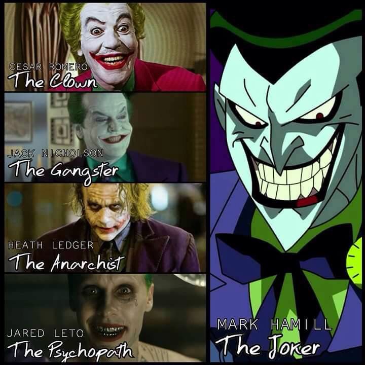 Years ago, I saw this image shared online. I don’t remember who shared it, or who created it, so I apologize profusely for not being able to give it proper attribution. Because I think it’s absolutely genius and spot-on in the way it breaks down the many sides of the Joker and his on-screen depictions: